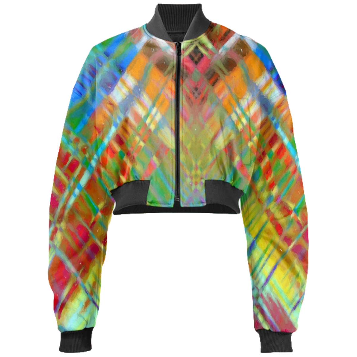 Red Green Freestyle Plaid Gabriel Held Cropped Bomber Jacket