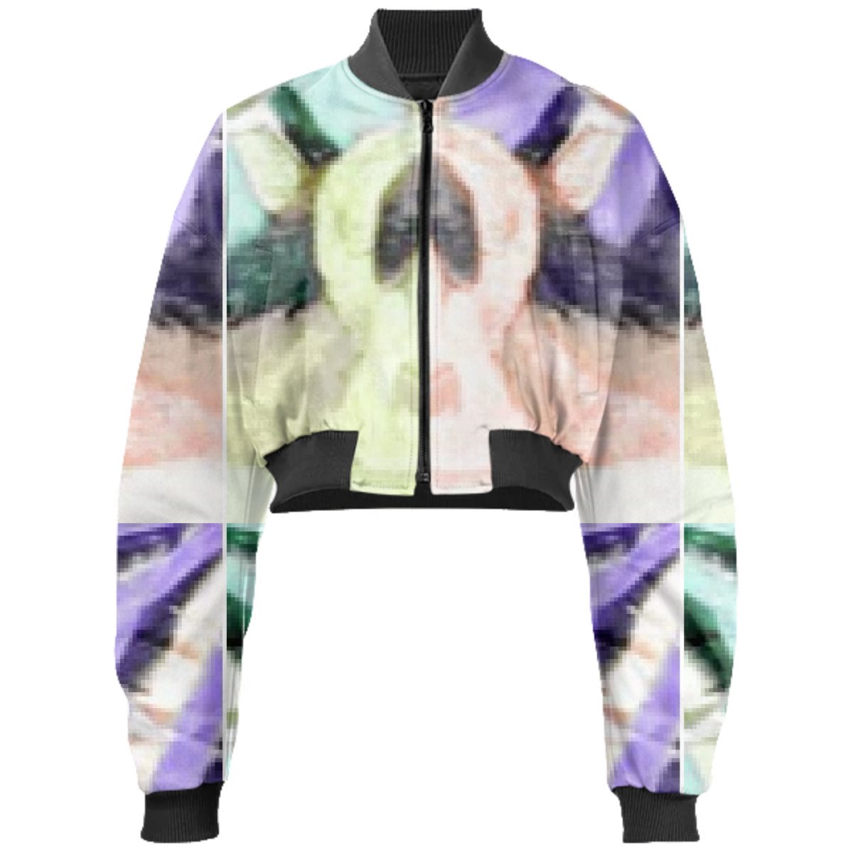 Designed by Gabriel Held this neoprene bomber jacket has a cropped fit with raglan sleeves a zip up front and two welt pockets. Matches with the Gabriel Held Mini Zip Skirt.