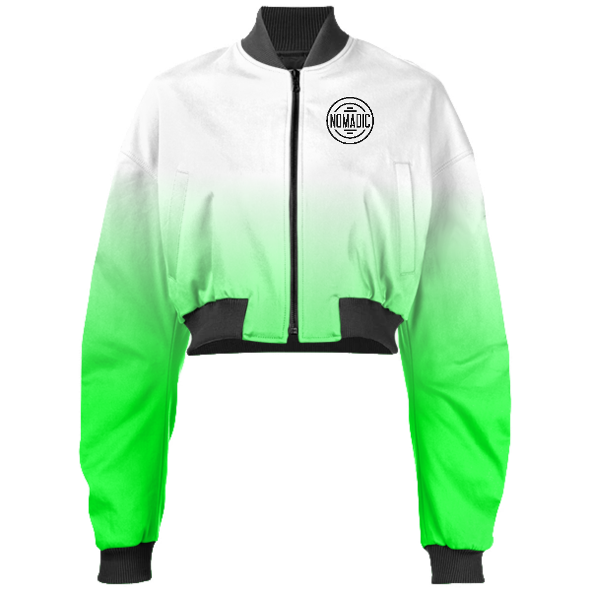 Designed by Gabriel Held this neoprene bomber jacket has a cropped fit with raglan sleeves a zip up front and two welt pockets. Matches with the Gabriel Held Mini Zip Skirt.
