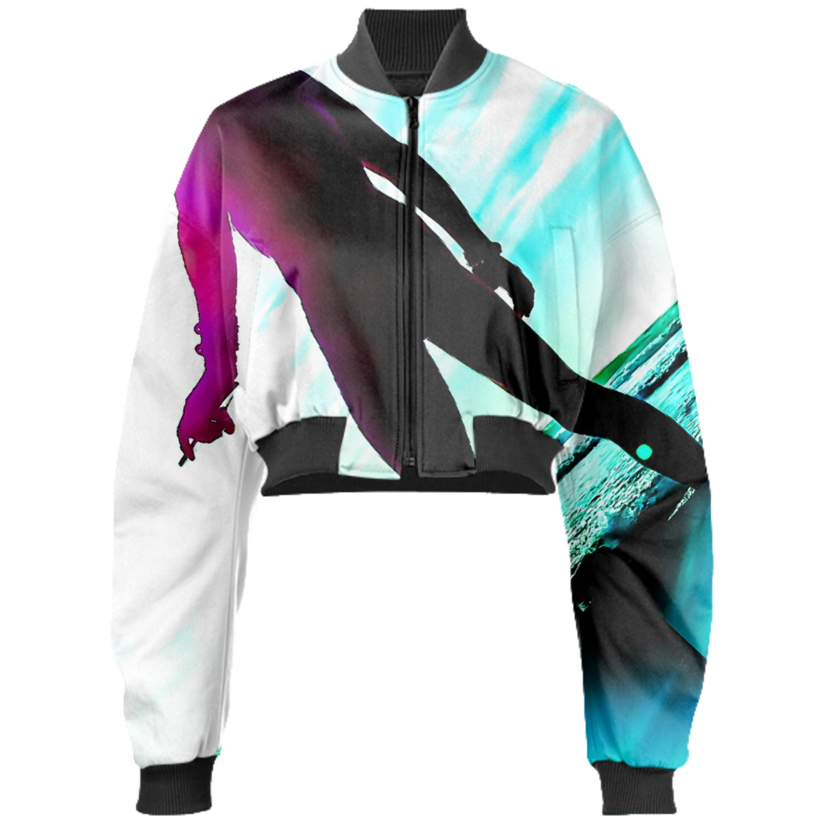Designed by Gabriel Held this neoprene bomber jacket has a cropped fit with raglan sleeves a zip up front and two welt pockets. Matches with the Gabriel Held Mini Zip Skirt.
