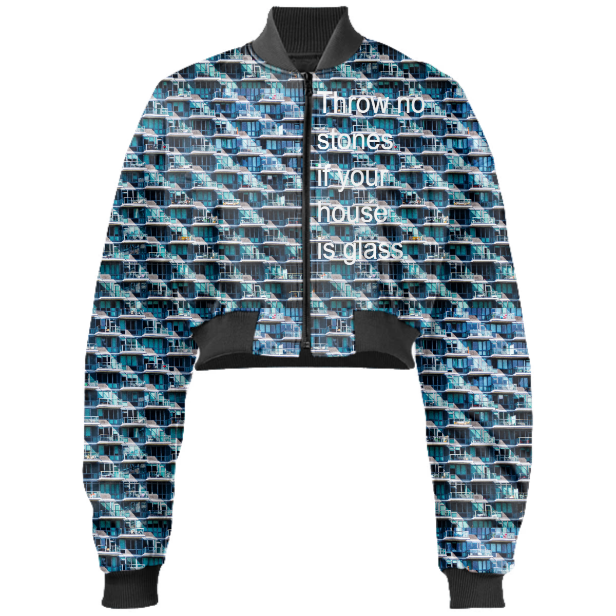 Designed by Gabriel Held this neoprene bomber jacket has a cropped fit with raglan sleeves a zip up front and two welt pockets. Matches with the Gabriel Held Mini Zip Skirt.
