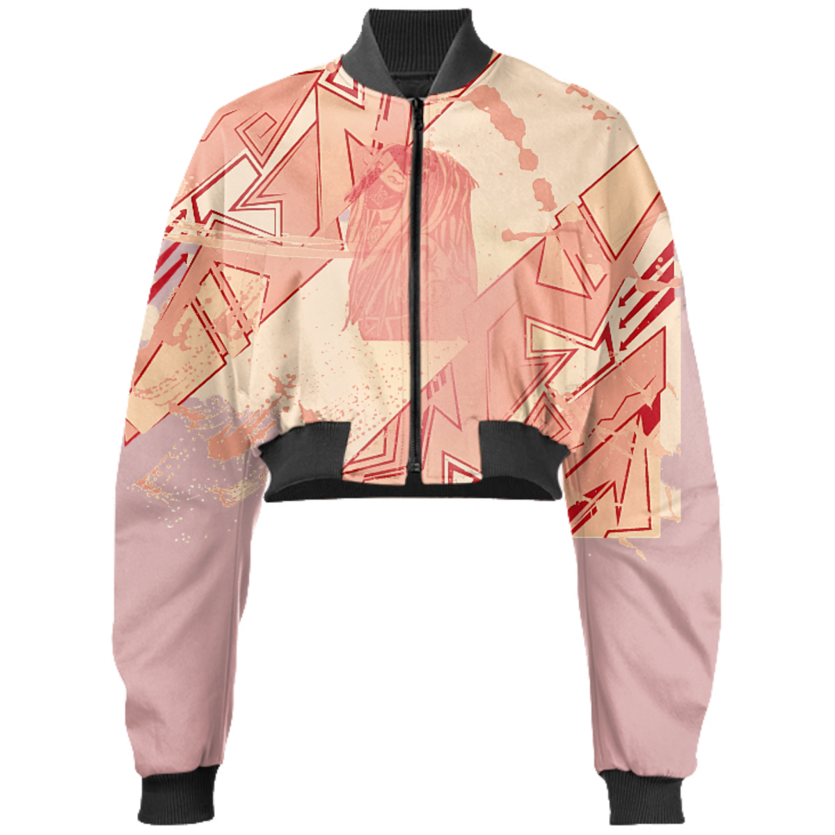 Designed by Gabriel Held this neoprene bomber jacket has a cropped fit with raglan sleeves a zip up front and two welt pockets. Matches with the Gabriel Held Mini Zip Skirt.
