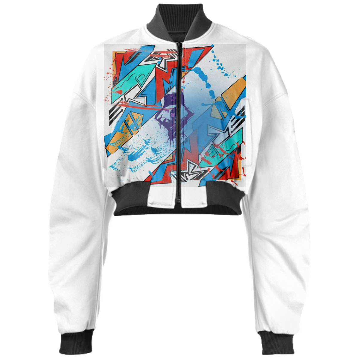 Designed by Gabriel Held this neoprene bomber jacket has a cropped fit with raglan sleeves a zip up front and two welt pockets. Matches with the Gabriel Held Mini Zip Skirt.