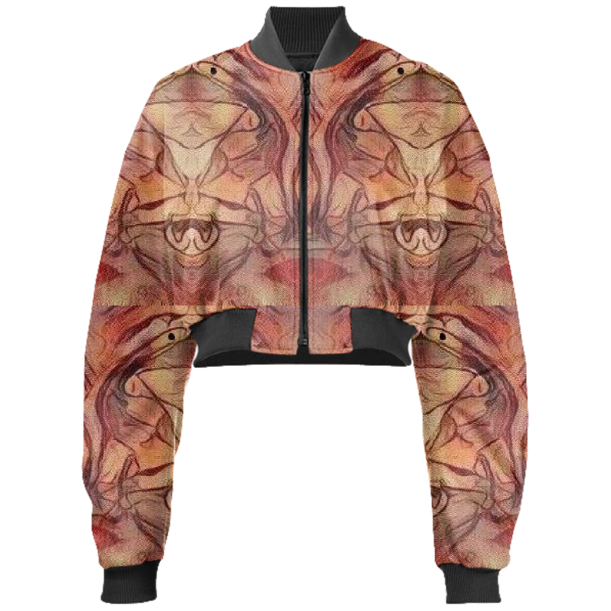 Designed by Gabriel Held this neoprene bomber jacket has a cropped fit with raglan sleeves a zip up front and two welt pockets. Matches with the Gabriel Held Mini Zip Skirt.