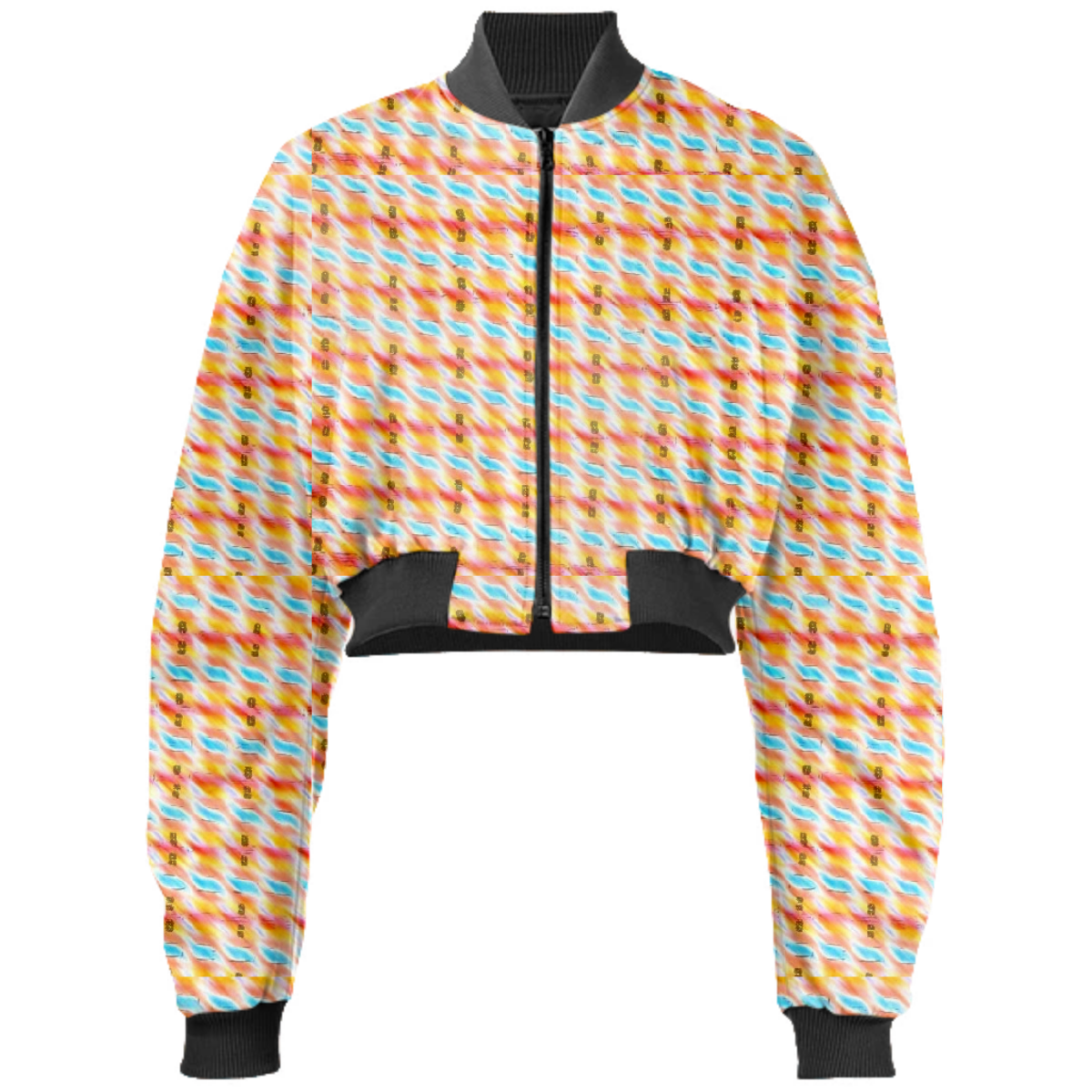 Designed by Gabriel Held this neoprene bomber jacket has a cropped fit with raglan sleeves a zip up front and two welt pockets. Matches with the Gabriel Held Mini Zip Skirt.