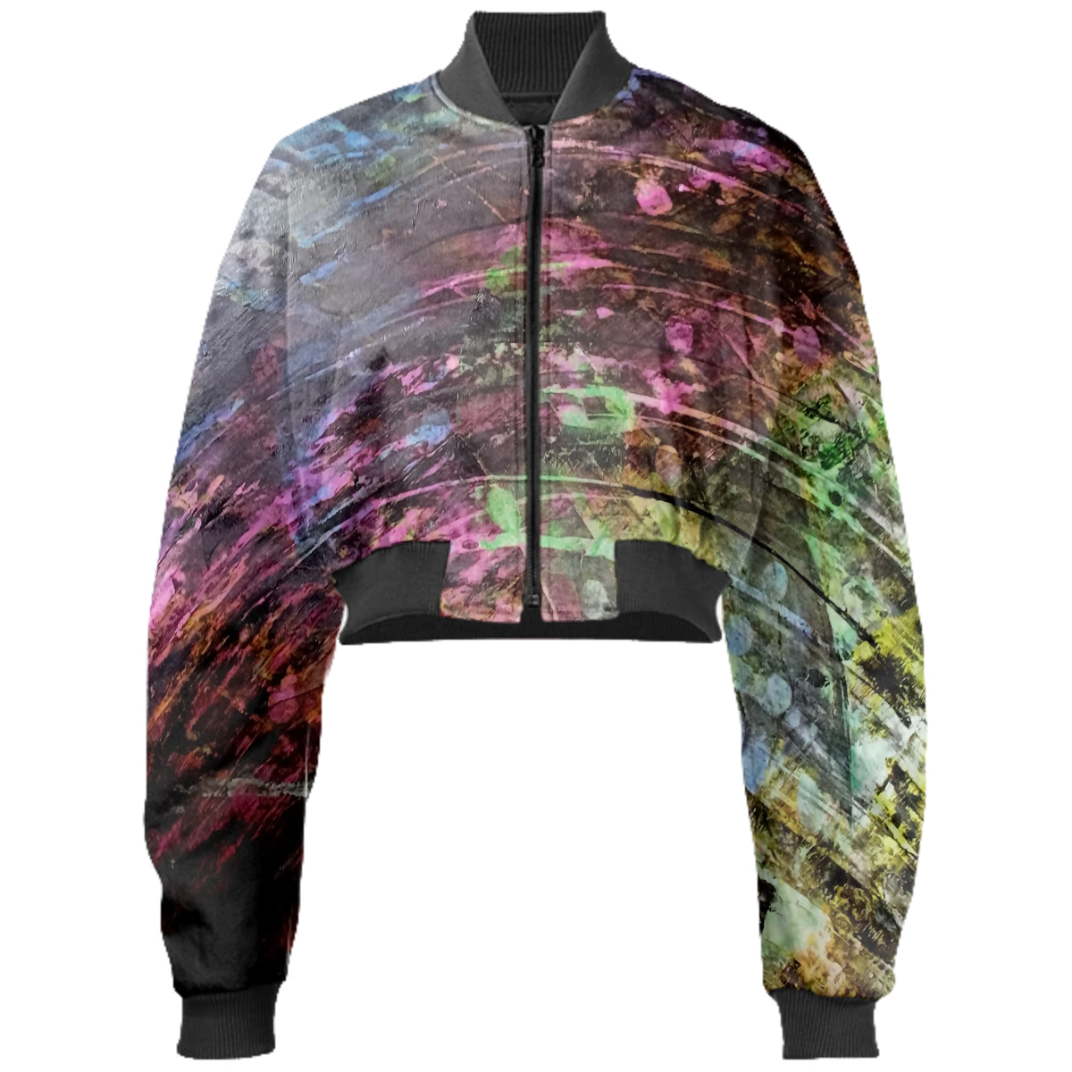 Designed by Gabriel Held this neoprene bomber jacket has a cropped fit with raglan sleeves a zip up front and two welt pockets. Matches with the Gabriel Held Mini Zip Skirt.