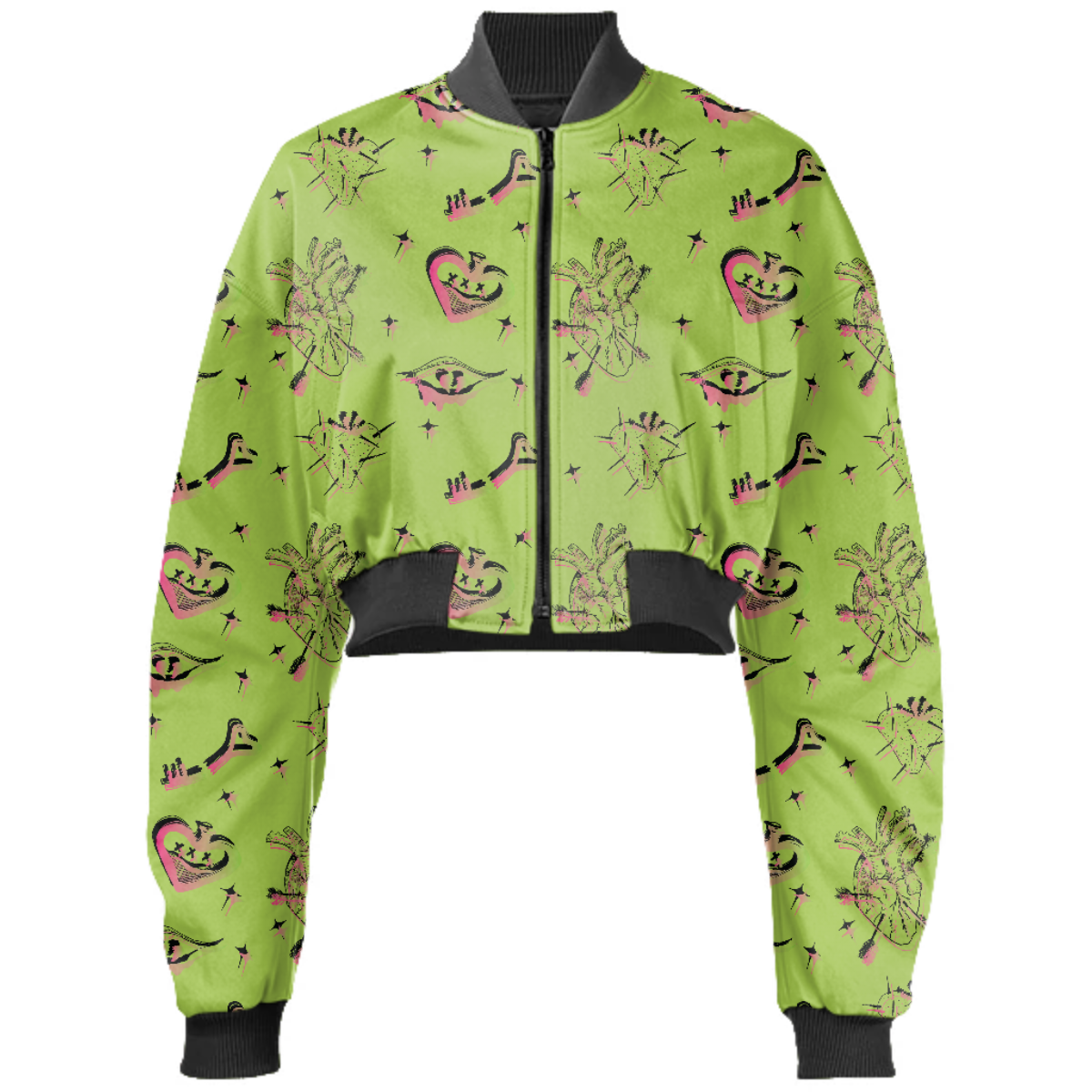 Designed by Gabriel Held this neoprene bomber jacket has a cropped fit with raglan sleeves a zip up front and two welt pockets. Matches with the Gabriel Held Mini Zip Skirt.