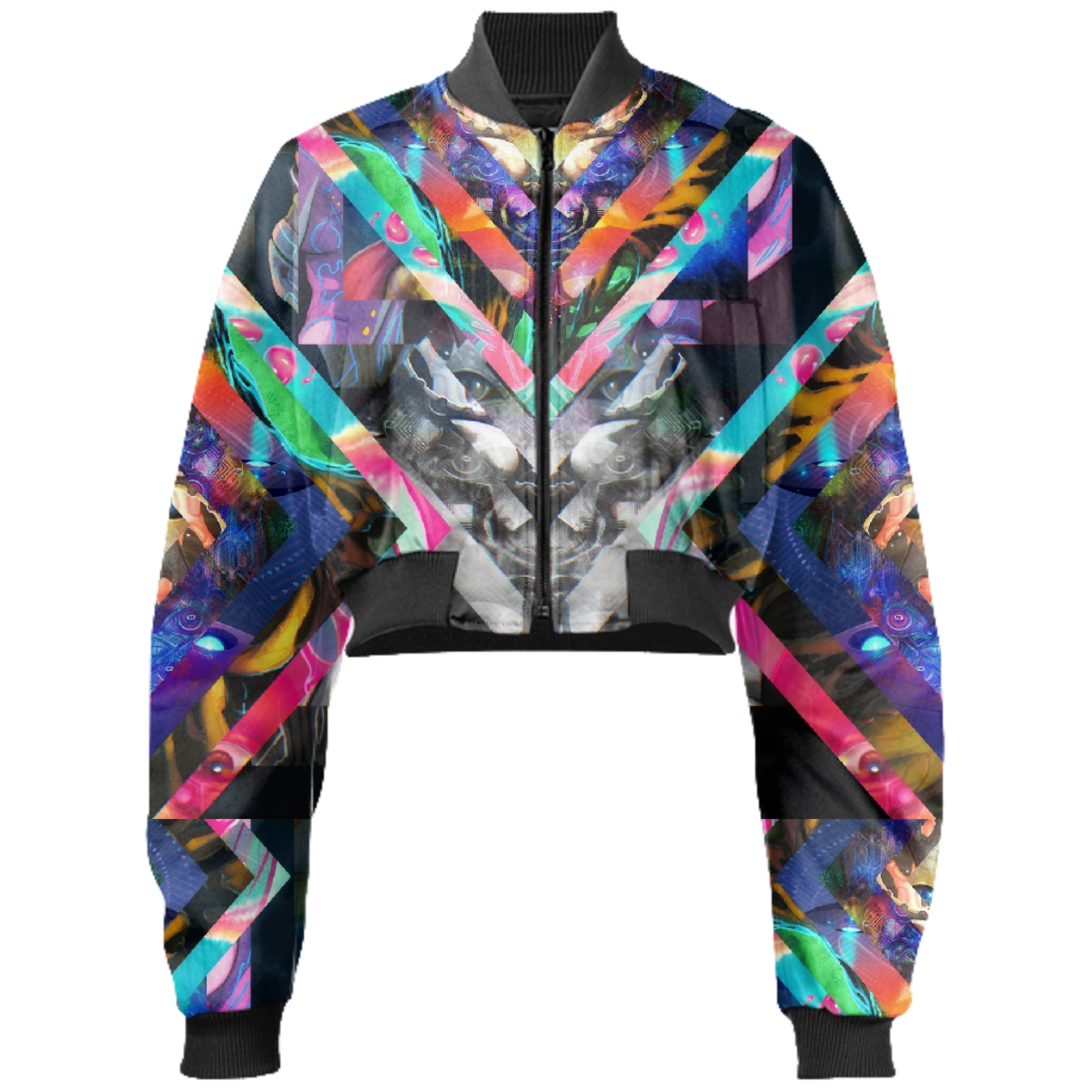 Designed by Gabriel Held this neoprene bomber jacket has a cropped fit with raglan sleeves a zip up front and two welt pockets. Matches with the Gabriel Held Mini Zip Skirt.