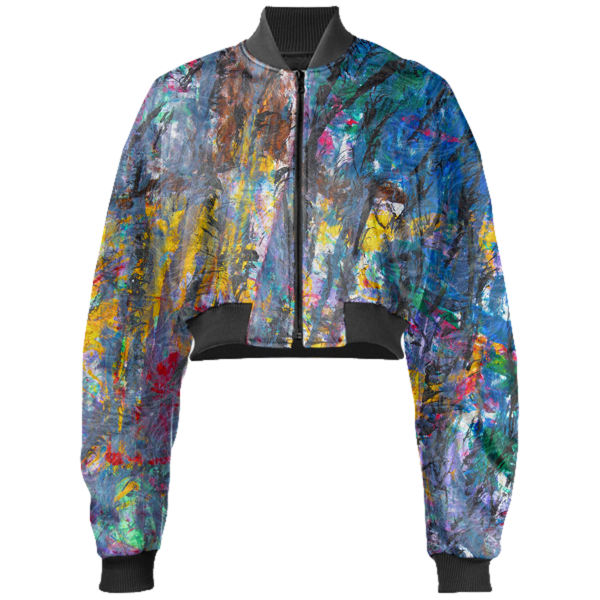 Designed by Gabriel Held this neoprene bomber jacket has a cropped fit with raglan sleeves a zip up front and two welt pockets. Matches with the Gabriel Held Mini Zip Skirt.