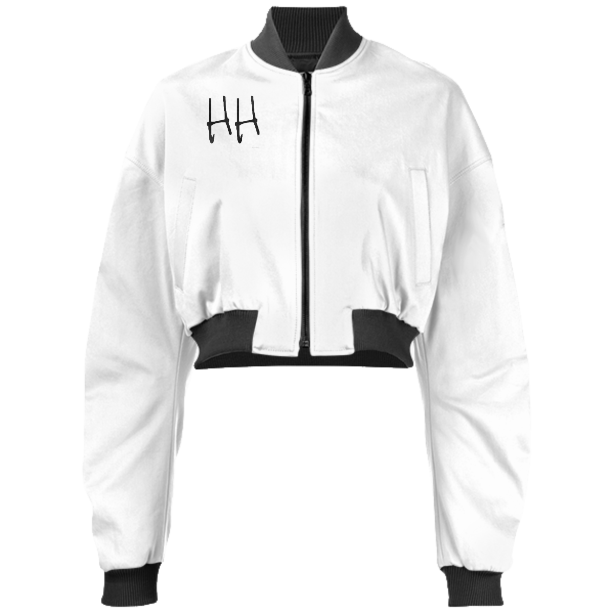 Designed by Gabriel Held this neoprene bomber jacket has a cropped fit with raglan sleeves a zip up front and two welt pockets. Matches with the Gabriel Held Mini Zip Skirt.