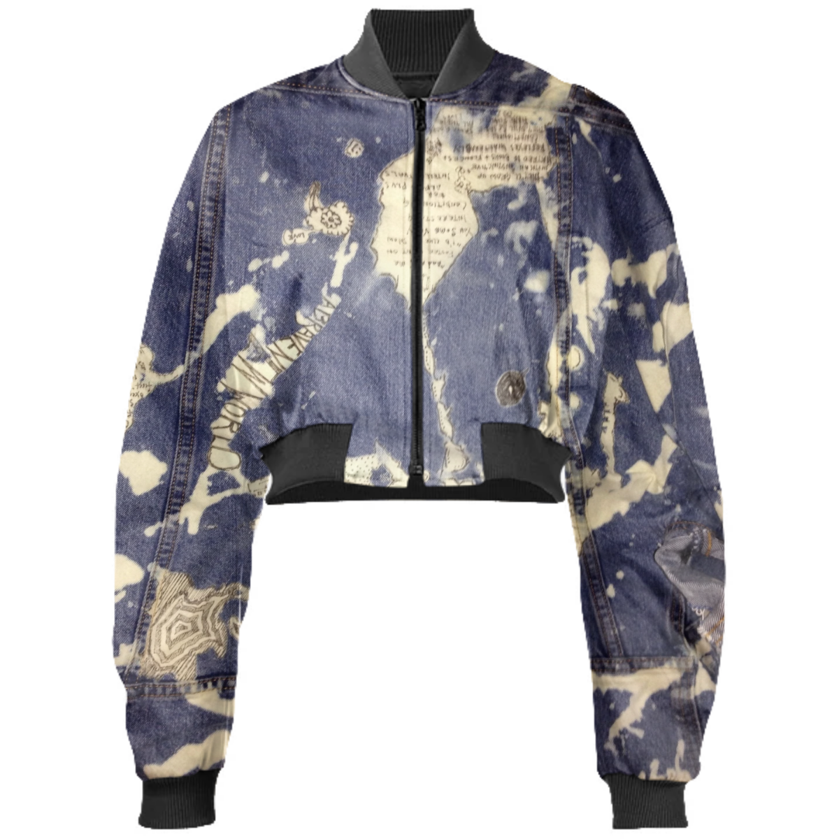 Designed by Gabriel Held this neoprene bomber jacket has a cropped fit with raglan sleeves a zip up front and two welt pockets. Matches with the Gabriel Held Mini Zip Skirt.