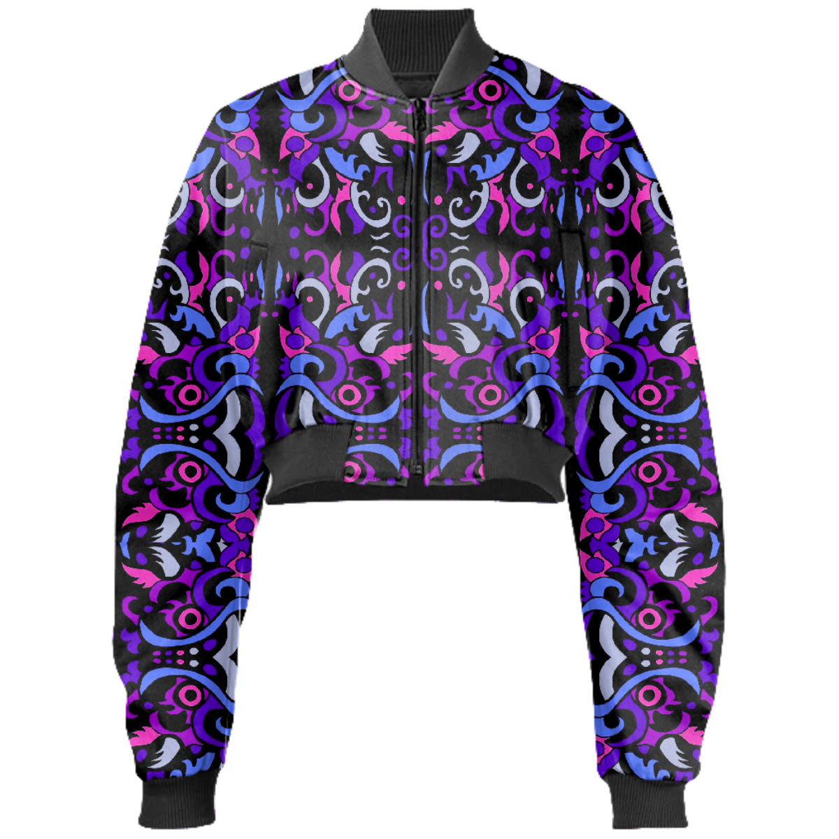 Designed by Gabriel Held this neoprene bomber jacket has a cropped fit with raglan sleeves a zip up front and two welt pockets. Matches with the Gabriel Held Mini Zip Skirt.