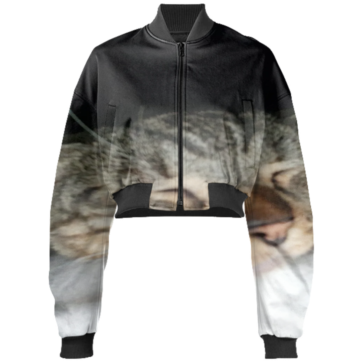 Designed by Gabriel Held this neoprene bomber jacket has a cropped fit with raglan sleeves a zip up front and two welt pockets. Matches with the Gabriel Held Mini Zip Skirt.