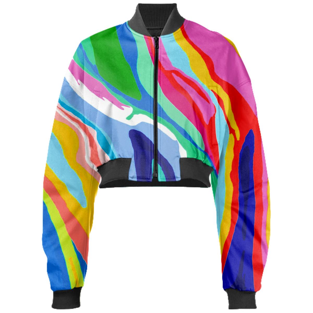 Designed by Gabriel Held this neoprene bomber jacket has a cropped fit with raglan sleeves a zip up front and two welt pockets. Matches with the Gabriel Held Mini Zip Skirt.