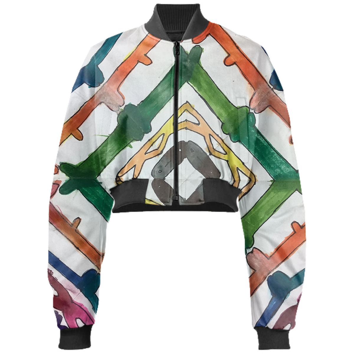 Designed by Gabriel Held this neoprene bomber jacket has a cropped fit with raglan sleeves a zip up front and two welt pockets. Matches with the Gabriel Held Mini Zip Skirt.