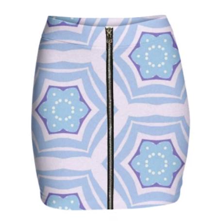 PASTEL BLUE AND WHITE PATTERN MINI ZIP SKIRT