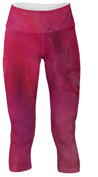 Mid calf length stretch yoga pants with an extra tall waistband for comfort and flexibility during workout.
