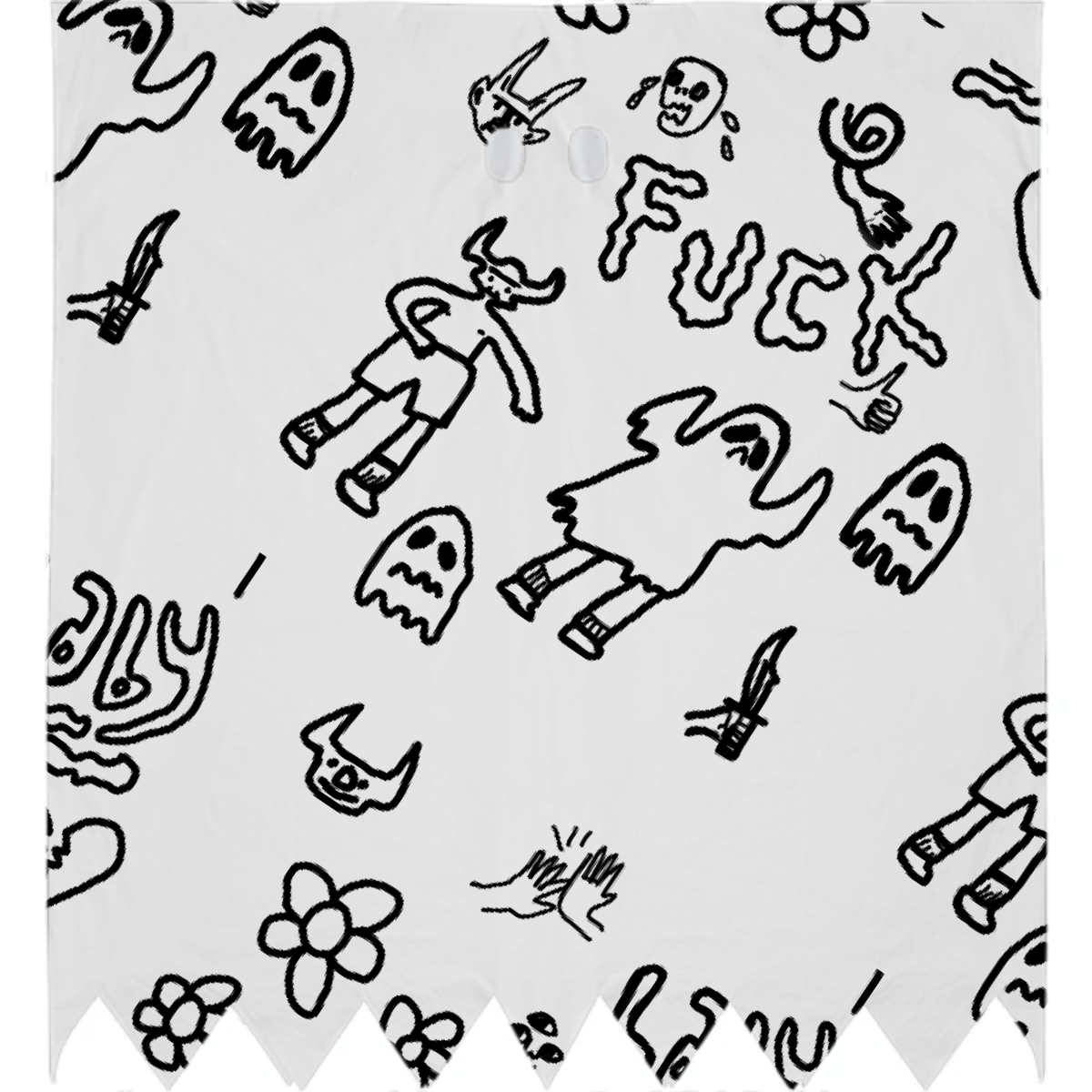 Spice up your trick or treat game with this all over print ghost costume. Features arm holes strategically placed eye cut outs and bottom wavy hem.