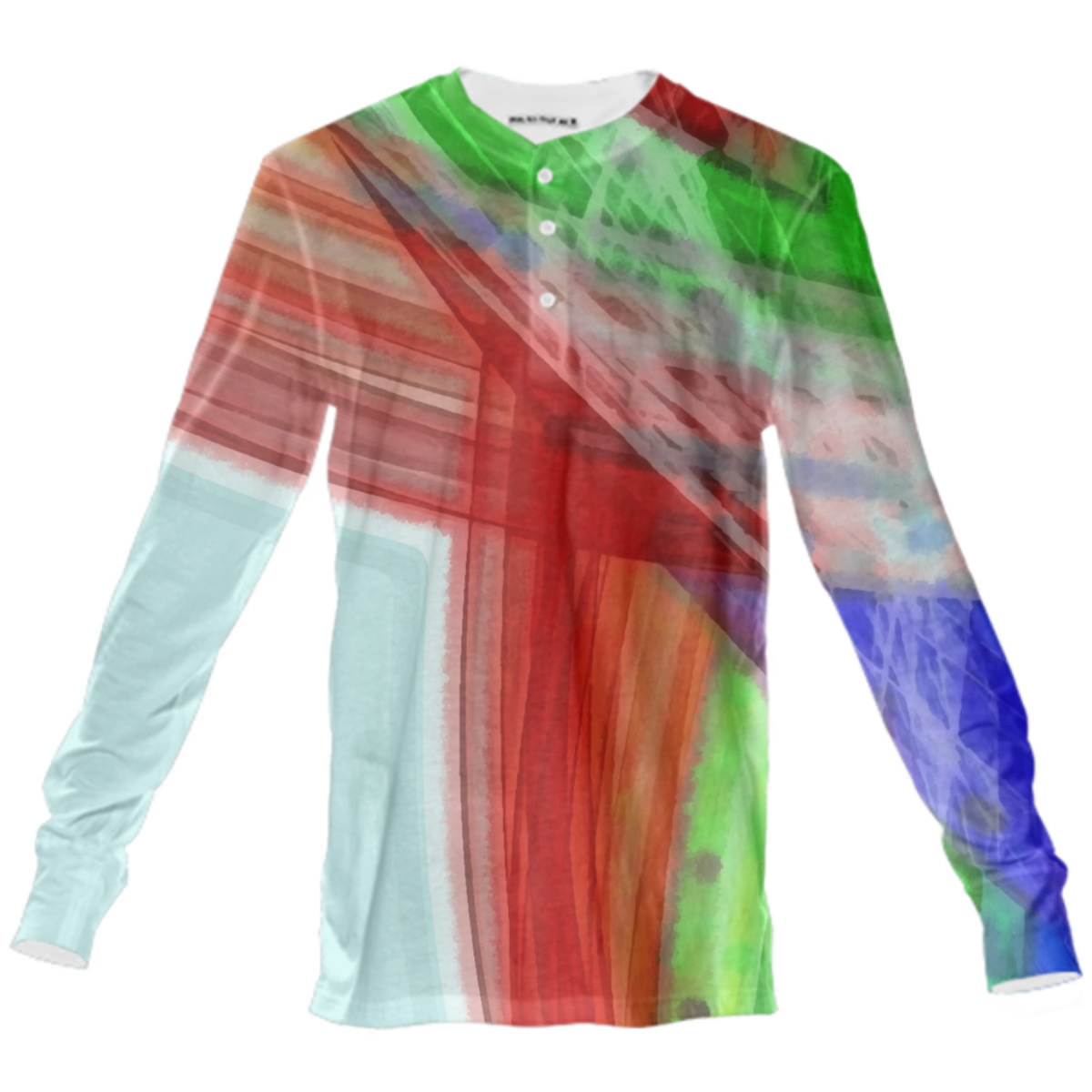 Classic crew neck cuffed henley shirt with front plastic buttons for comfort.