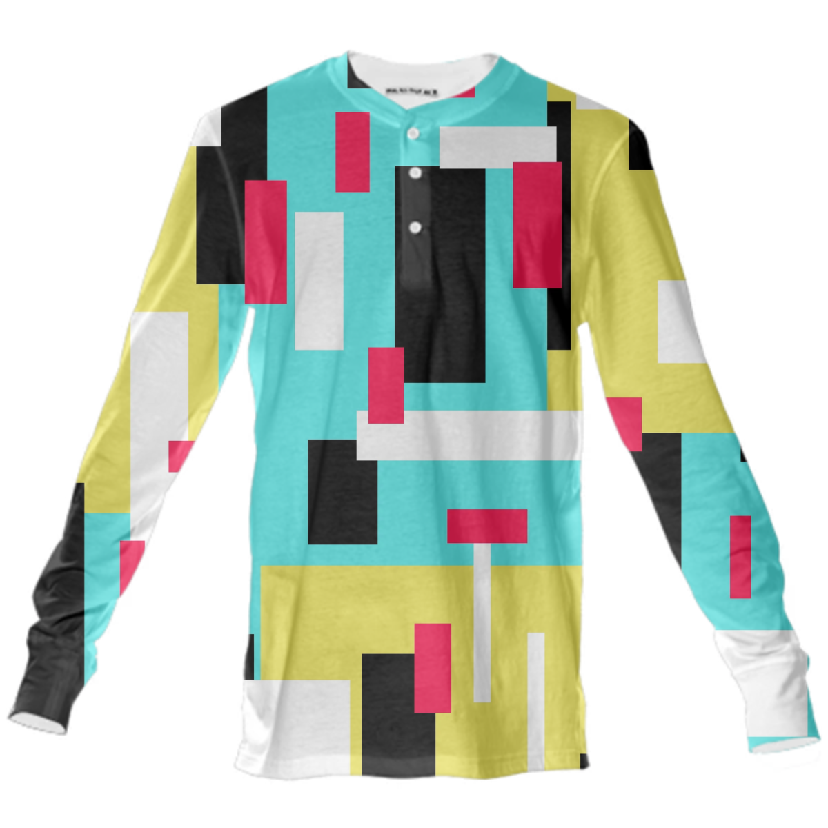 Classic crew neck cuffed henley shirt with front plastic buttons for comfort.