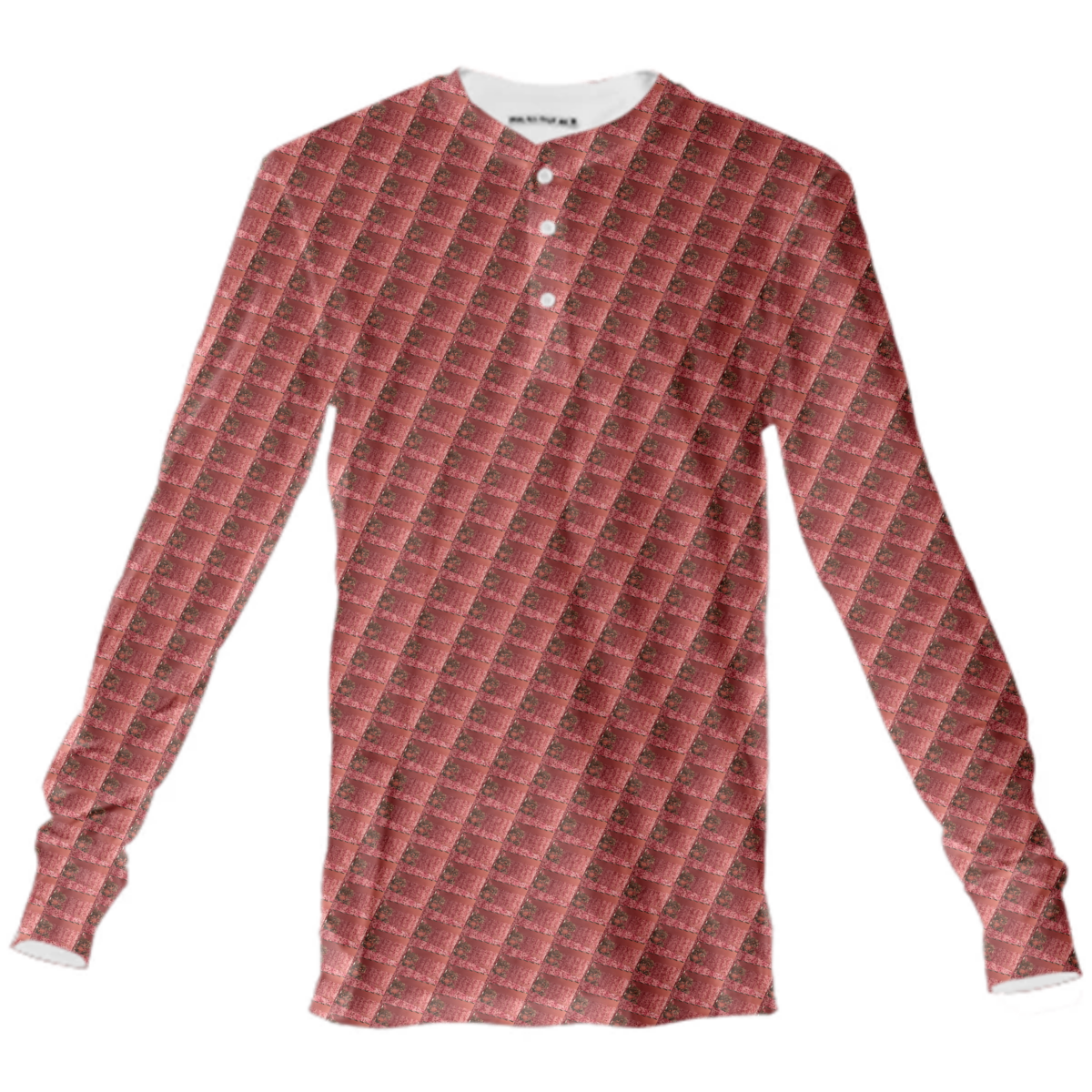 Classic crew neck cuffed henley shirt with front plastic buttons for comfort.