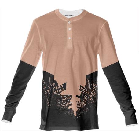 Classic crew neck cuffed henley shirt with front plastic buttons for comfort.