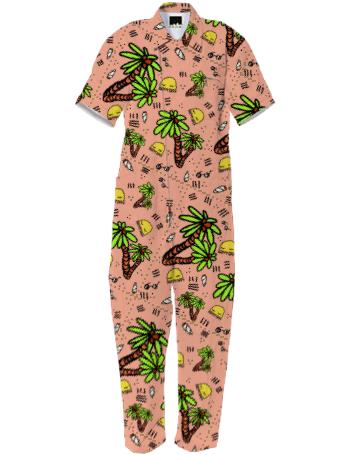Loose fit jumpsuit with short sleeves front patch pockets at the hips and a zip up breast pocket. With a double pull zipper this jumpsuit is easy to get on and off. The back features a slight elastic cinch at the waist.