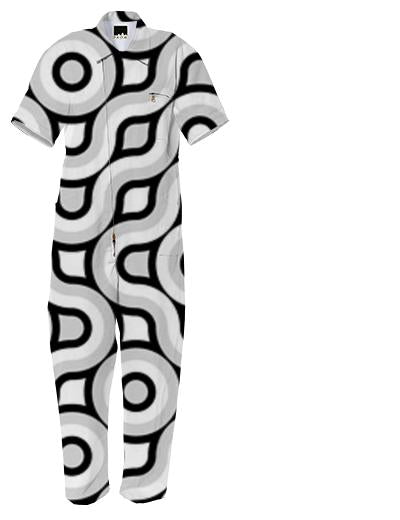 Loose fit jumpsuit with short sleeves front patch pockets at the hips and a zip up breast pocket. With a double pull zipper this jumpsuit is easy to get on and off. The back features a slight elastic cinch at the waist.
