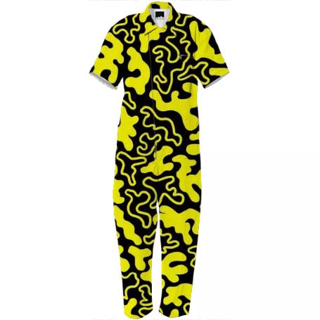 Loose fit jumpsuit with short sleeves front patch pockets at the hips and a zip up breast pocket. With a double pull zipper this jumpsuit is easy to get on and off. The back features a slight elastic cinch at the waist.