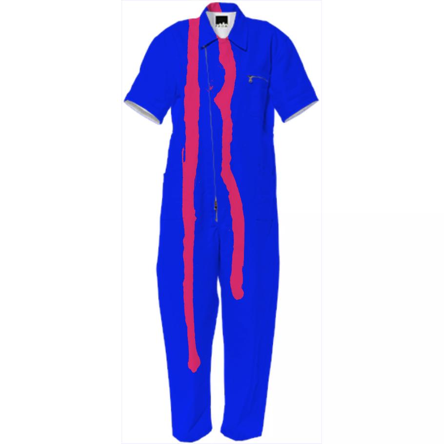 Loose fit jumpsuit with short sleeves front patch pockets at the hips and a zip up breast pocket. With a double pull zipper this jumpsuit is easy to get on and off. The back features a slight elastic cinch at the waist.