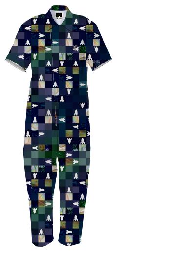 Loose fit jumpsuit with short sleeves front patch pockets at the hips and a zip up breast pocket. With a double pull zipper this jumpsuit is easy to get on and off. The back features a slight elastic cinch at the waist.