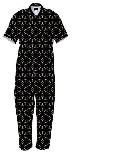 Loose fit jumpsuit with short sleeves front patch pockets at the hips and a zip up breast pocket. With a double pull zipper this jumpsuit is easy to get on and off. The back features a slight elastic cinch at the waist.