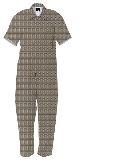 Loose fit jumpsuit with short sleeves front patch pockets at the hips and a zip up breast pocket. With a double pull zipper this jumpsuit is easy to get on and off. The back features a slight elastic cinch at the waist.