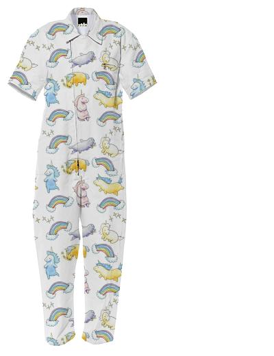 Loose fit jumpsuit with short sleeves front patch pockets at the hips and a zip up breast pocket. With a double pull zipper this jumpsuit is easy to get on and off. The back features a slight elastic cinch at the waist.