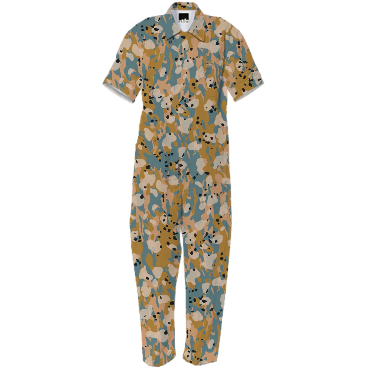 Loose fit jumpsuit with short sleeves front patch pockets at the hips and a zip up breast pocket. With a double pull zipper this jumpsuit is easy to get on and off. The back features a slight elastic cinch at the waist.