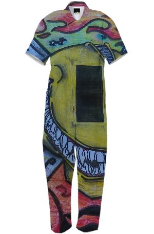 Loose fit jumpsuit with short sleeves front patch pockets at the hips and a zip up breast pocket. With a double pull zipper this jumpsuit is easy to get on and off. The back features a slight elastic cinch at the waist.