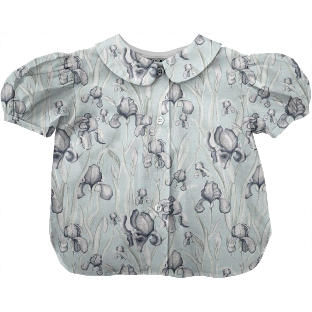 Sweet and simple button up kids blouse with peter pan collar and puff sleeves.