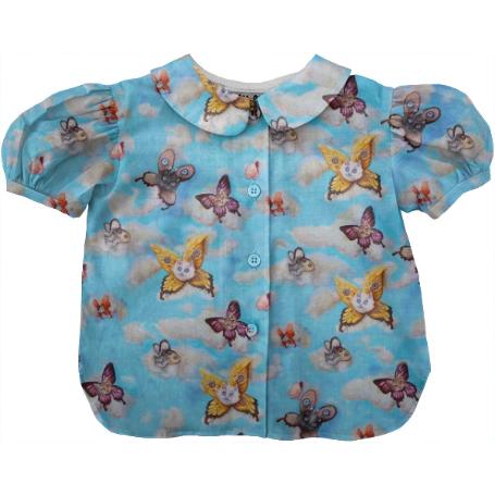 Sweet and simple button up kids blouse with peter pan collar and puff sleeves.