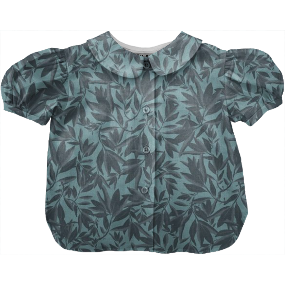 Sweet and simple button up kids blouse with peter pan collar and puff sleeves.