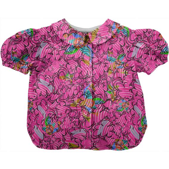 Sweet and simple button up kids blouse with peter pan collar and puff sleeves.