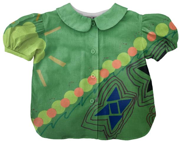Sweet and simple button up kids blouse with peter pan collar and puff sleeves.