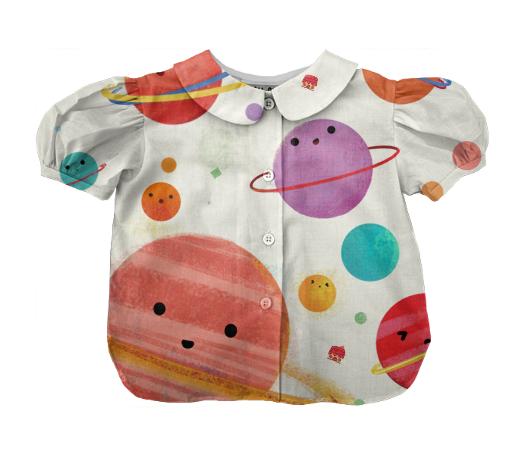 Sweet and simple button up kids blouse with peter pan collar and puff sleeves.