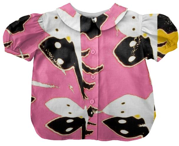 Sweet and simple button up kids blouse with peter pan collar and puff sleeves.