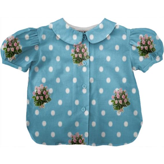 Sweet and simple button up kids blouse with peter pan collar and puff sleeves.