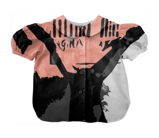 Sweet and simple button up kids blouse with peter pan collar and puff sleeves.