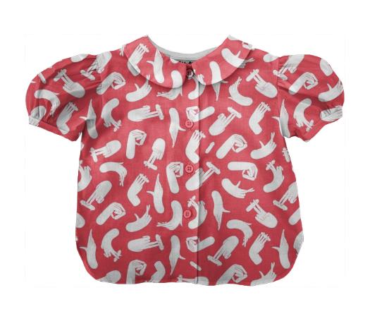Sweet and simple button up kids blouse with peter pan collar and puff sleeves.