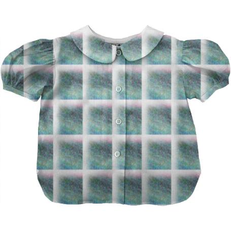 Sweet and simple button up kids blouse with peter pan collar and puff sleeves.