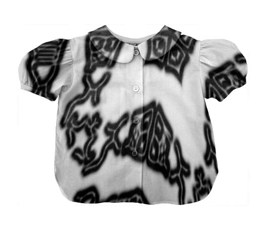 Sweet and simple button up kids blouse with peter pan collar and puff sleeves.