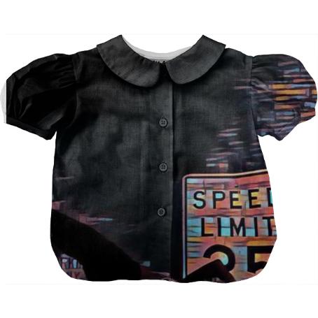 Sweet and simple button up kids blouse with peter pan collar and puff sleeves.