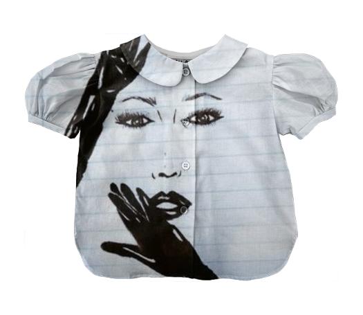 Sweet and simple button up kids blouse with peter pan collar and puff sleeves.